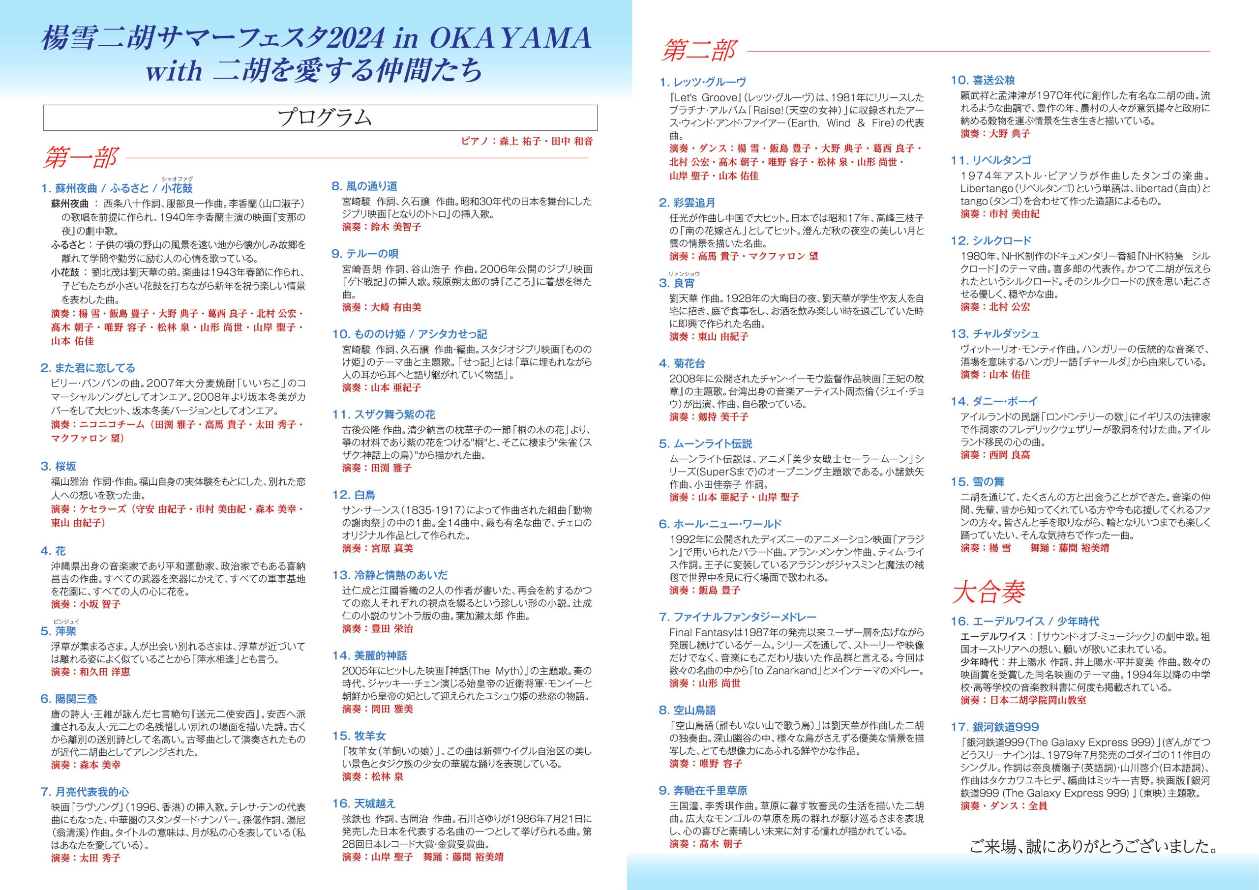 ◇ 7月4日(木) 楊雪二胡サマーフェスタ2024in岡山のプログラムを追加しました。
